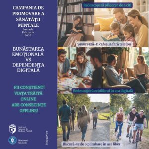 Institutul Național de Sănătate Publică și Direcția de Sănătate Publică Iași lansează campania națională de informare, educare și conștientizare dedicată promovării sănătăţii mintale, în perioada ianuarie-februarie 2026, o inițiativă esențială pentru a aborda escaladarea provocărilor de sănătate mintală generate de utilizarea problematică a mediului digital.
