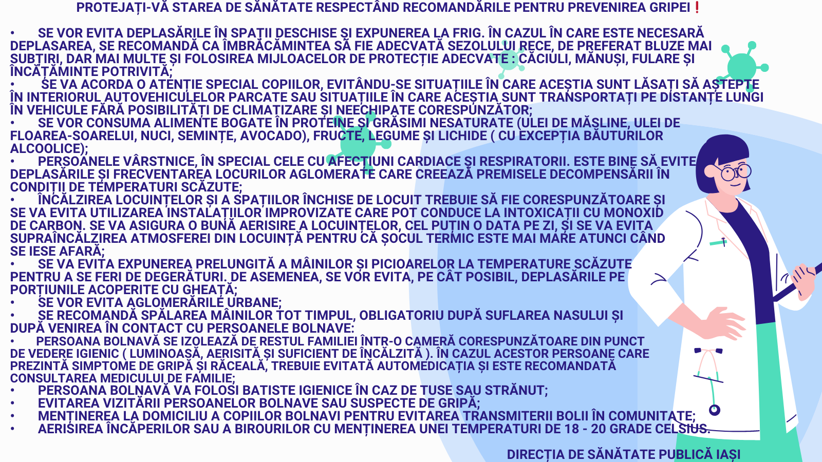 Home Comunicate de presa Măsuri de prevenire a îmbolnăvirilor prin infecții respiratorii acute şi gripă