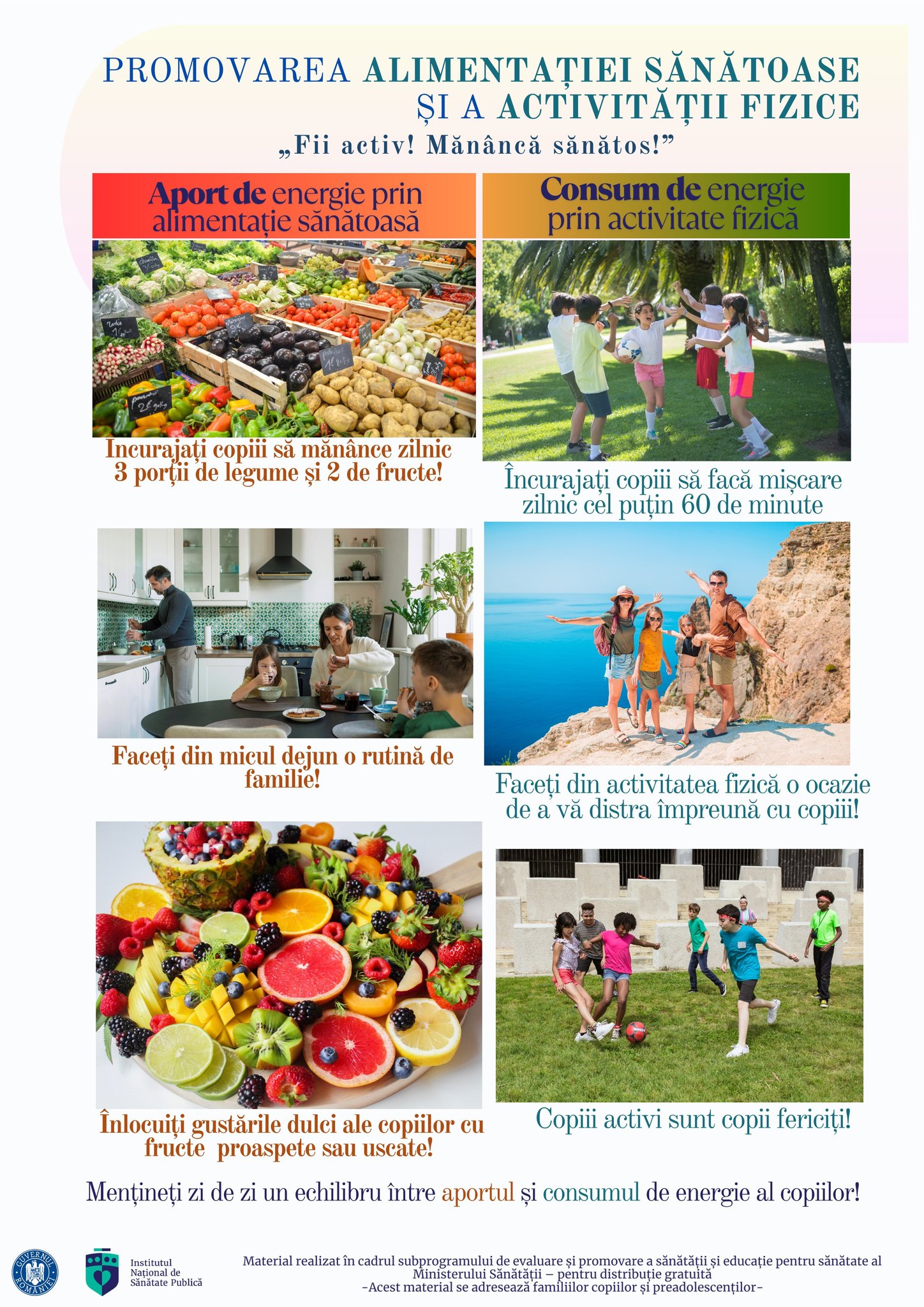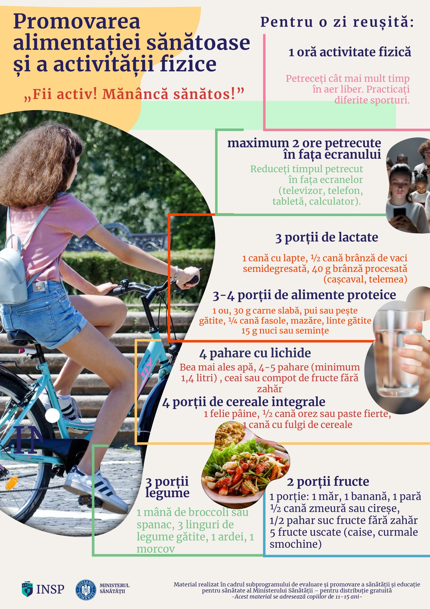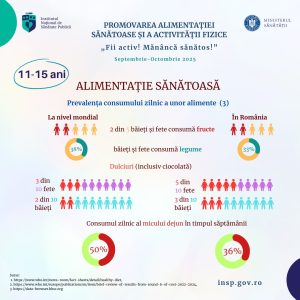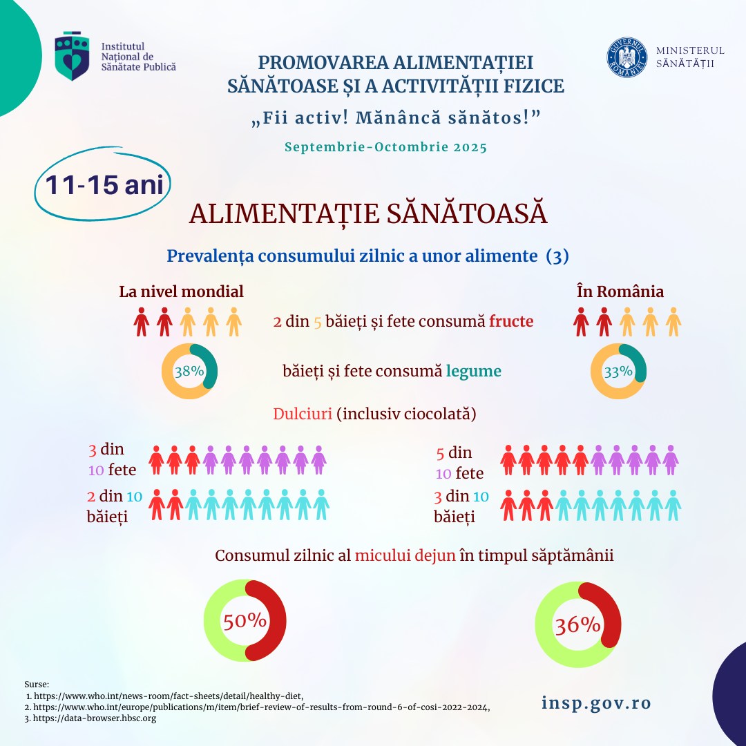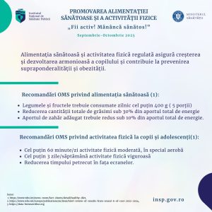 În perioada septembrie-octombrie 2025 la nivel național se derulează campania de informare, educare, comunicare având ca tema promovărea alimentației sănătoase și a activității fizice