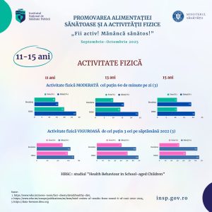 În același timp, studiul internațional privind comportamentul de sănătate la copiii de vârstă școlară, HBSC (Health Behaviour in School Children) din 2023, reliefează faptul că, practicarea de activități fizice în rândul copiilor și adolescenților este deficitară, neajungând la durata, intensitatea și frecvența recomandată pentru a aduce beneficii stării de sănătate.
