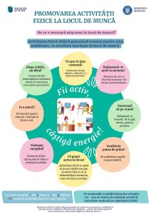 - promovarea activității fizice la locul de muncă pentru angajații cu activitate de birou și promovarea activității fizice în rândul vârstnicilor.
